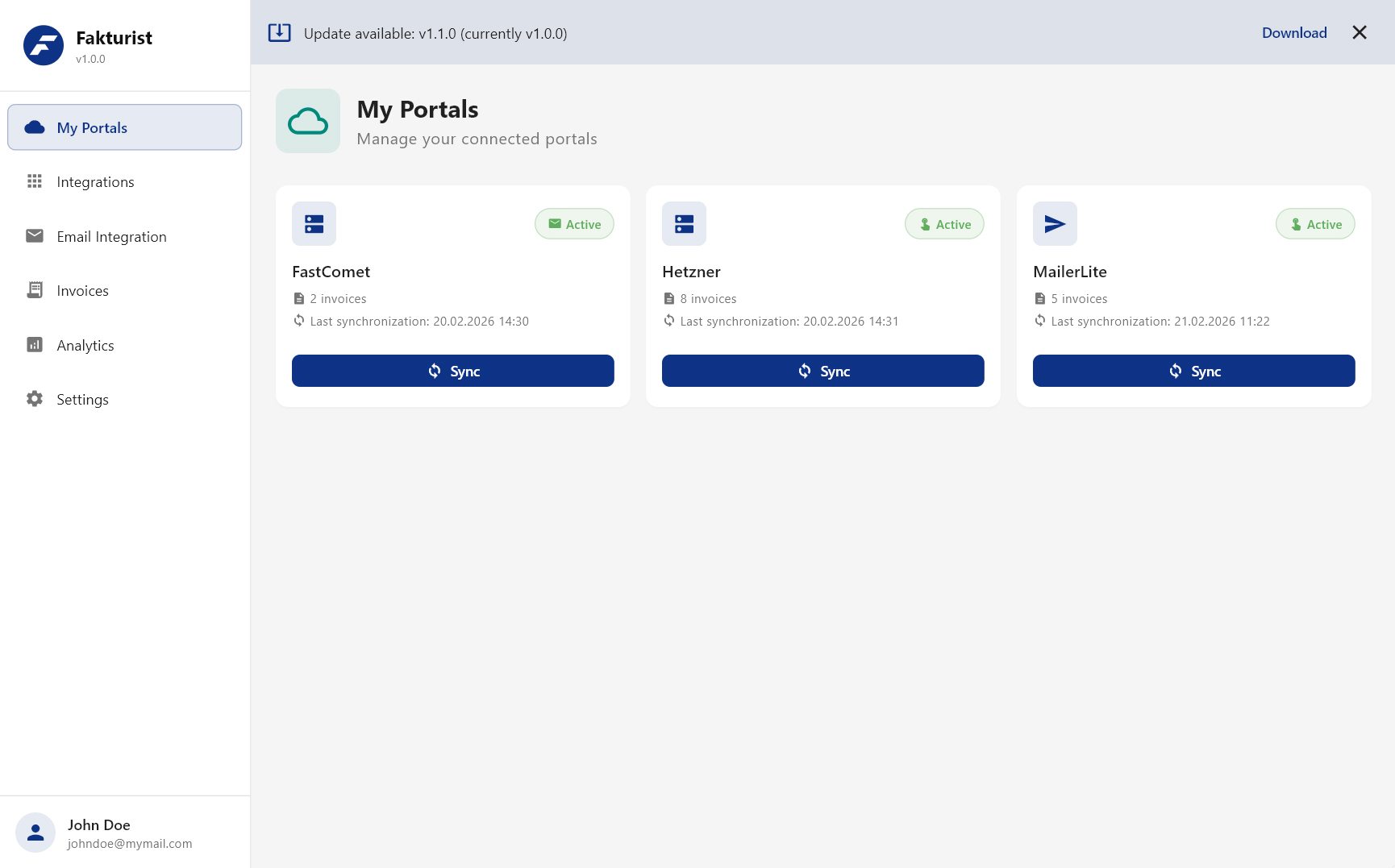 Fakturist is a high-performance desktop tool that automates invoice collection directly from your computer. Your credentials never leave your local machine.